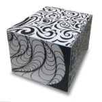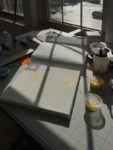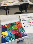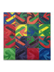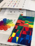 12″ x 12″ on Canvas. Student created a square module design, then created a repeated pattern on the square canvas to demonstrate and execute color mixing and specific palettes. All colors were derived from red, yellow and blue + black and white.