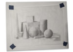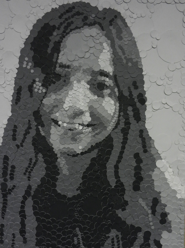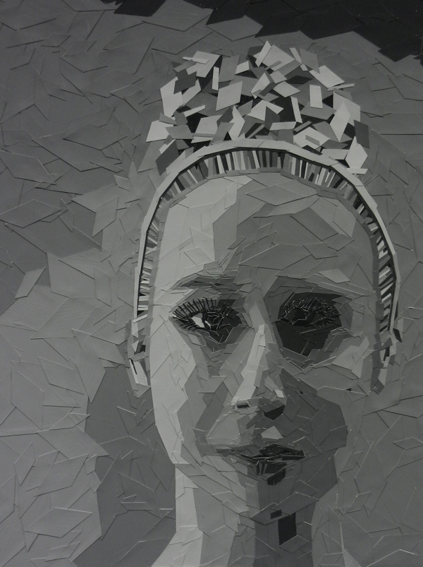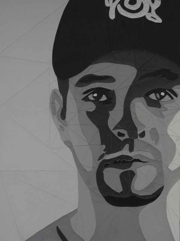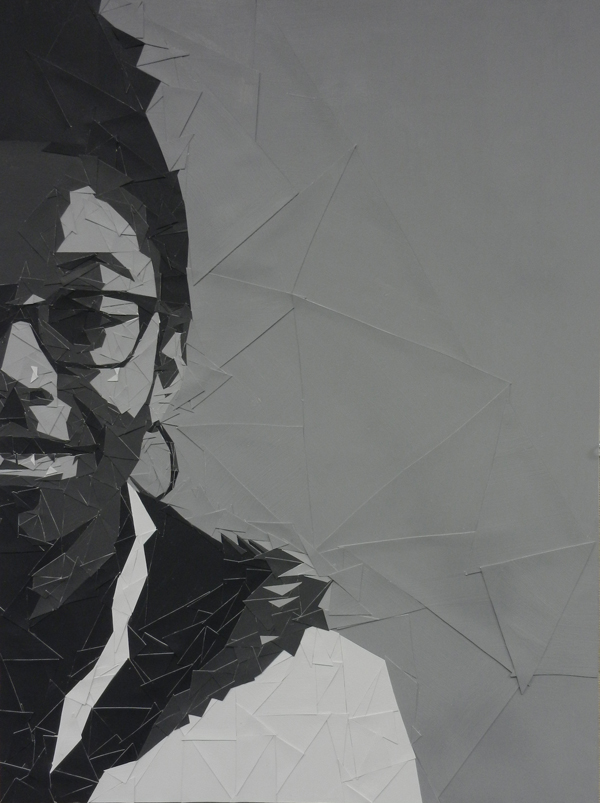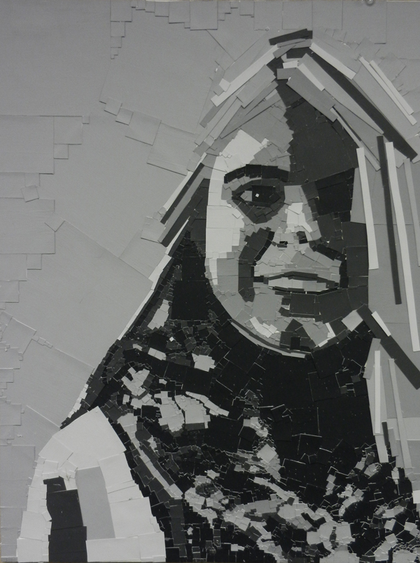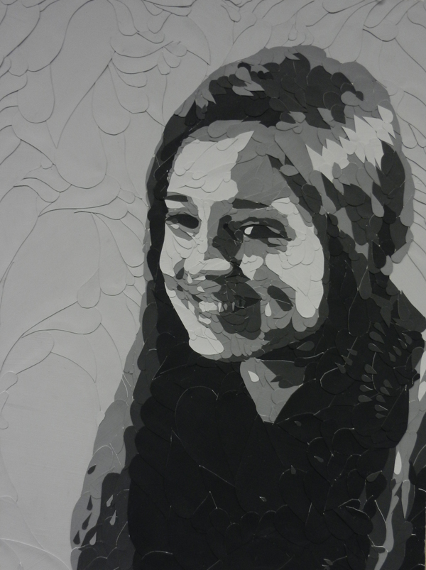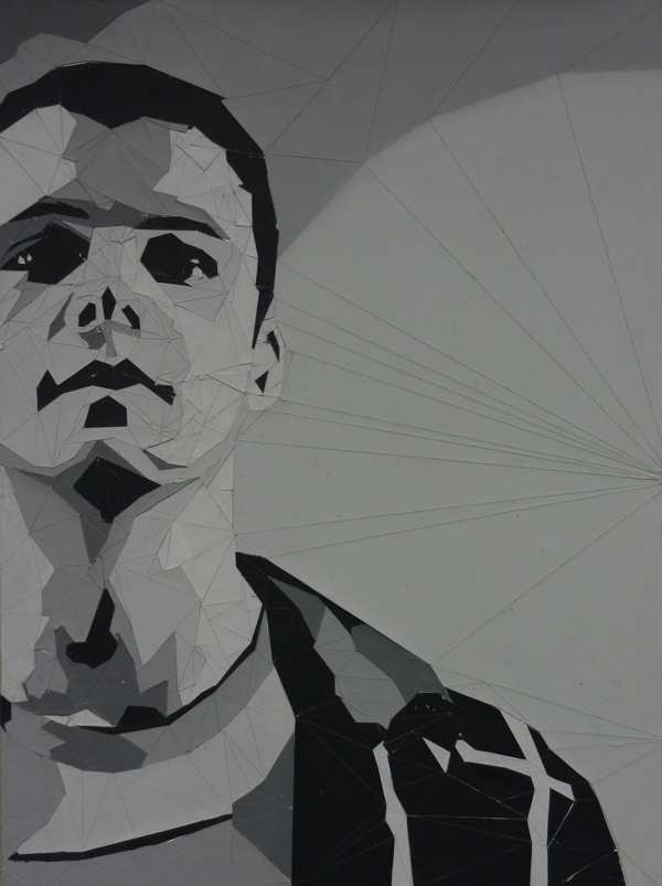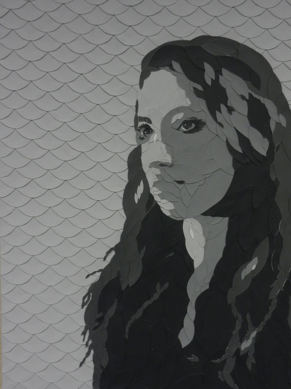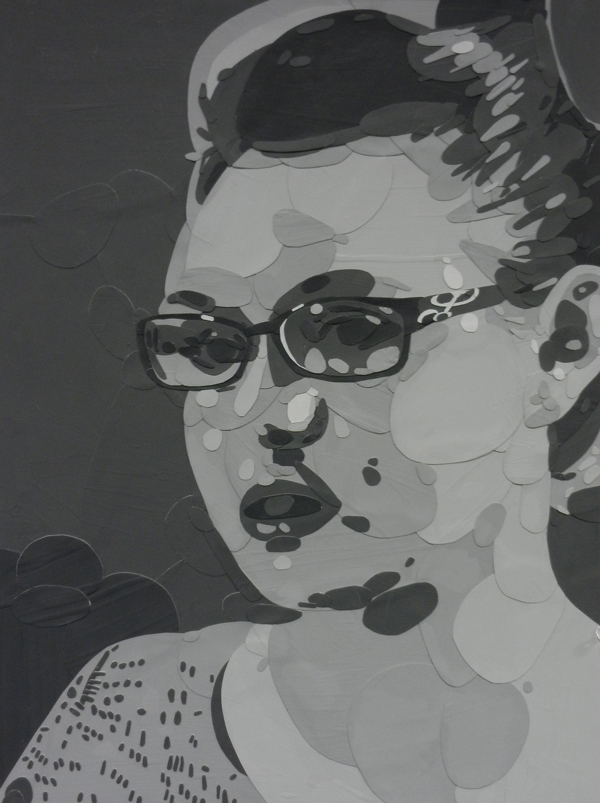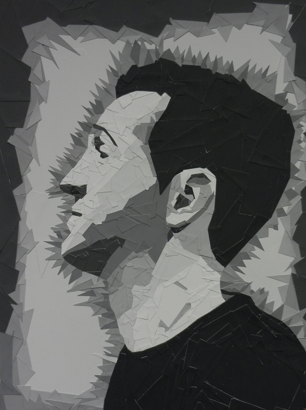 Student had to choose 6 values and a shape to create their portraits in grayscale. The size of each final artwork is 18″x24″
